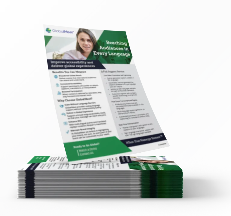 Find out how your organization can improve accessibility and deliver global experiences with GlobalMeet's full suite of Languages, Translation, and Captioning features.