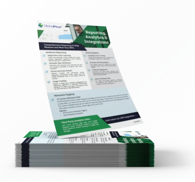 Download and discover how GlobalMeet's enterprise-grade reporting and analytics integrations deliver real-time insights and engagement metrics for enhanced ROI.